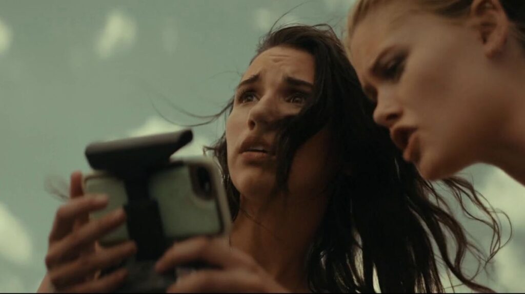 Perjalanan mendaki dimulai saat Becky dan Hunter berdiri di dasar menara tua tersebut. Film Fall memperlihatkan setiap langkah mereka yang menaiki tangga besi berkarat menuju puncak. Ketegangan meningkat seiring setiap meter yang berhasil mereka taklukkan. Hunter mendorong Becky untuk melakukan aksi ekstrem dengan bergelantungan di pinggir platform sambil merekam video untuk konten media sosial. Becky kemudian menaburkan abu Dan dari puncak menara sebagai bentuk perpisahan terakhir. Namun, suasana berubah drastis ketika mereka mulai turun. Salah satu bagian tangga tiba-tiba patah dan menjebak mereka di atas platform sempit tanpa jalan turun. Dalam kondisi genting, semangat petualangan berubah menjadi ketakutan nyata. Angin gurun berhembus kencang, membuat situasi semakin berbahaya. Ransel berisi air dan drone jatuh jauh ke bawah, mempersempit peluang mereka untuk bertahan hidup. Momen ini menjadi awal dari perjuangan panjang dua sahabat melawan alam dan ketakutan.